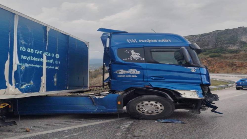 Burdur’da sürücüsünün direksiyon hakimiyetini kaybetmesi sonucu tırın demir bariyerlere çarptığı kazada tır sürücüsü yaralandı.