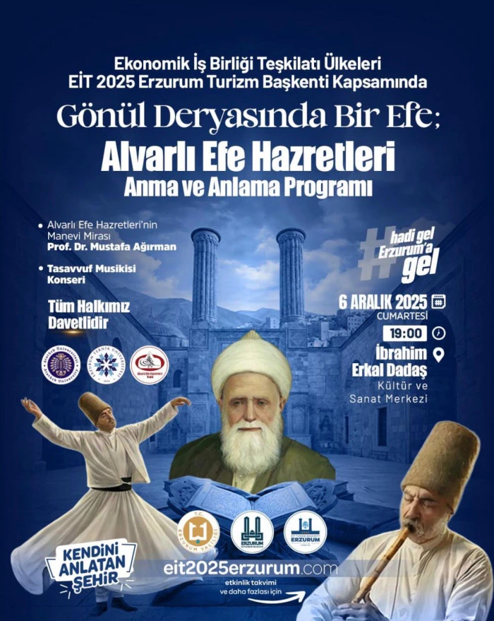 Ekonomik İşbirliği Teşkilatı (EİT) tarafından 2025 Turizm Başkenti ilan edilen Erzurum, bu unvanın ruhuna yakışır son programına ev sahipliği yaptı. “Gönül Deryasında Bir Efe, Alvarlı Efe Anma ve Anlama Programı” başlığıyla düzenlenen buluşmada, Erzurum’un önemli alimlerinden Alvarlı Efe Hazretleri’nin mirası ve manevi hizmetleri dualarla, belgesel gösterimiyle ve kültürel etkinlikle anıldı...