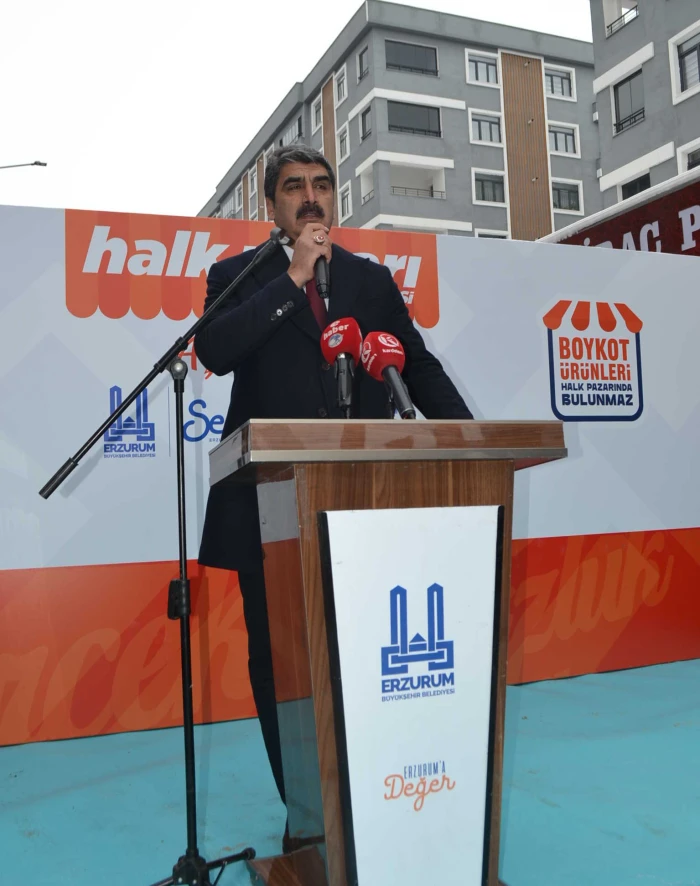 Törende konuşan Erzurum Büyükşehir Belediye Başkanı Mehmet Sekmen, Halk Pazarı’nın sadece bir alışveriş noktası değil, aynı zamanda sosyal adaletin somut bir örneği olduğunu vurguladı. Sekmen, “Bugün burada emeğin alın teriyle buluştuğu, bereketin hanelere adaletle dağıldığı, üreticinin de tüketicinin de kazandığı bir anlayışın kapılarını aralıyoruz” dedi.