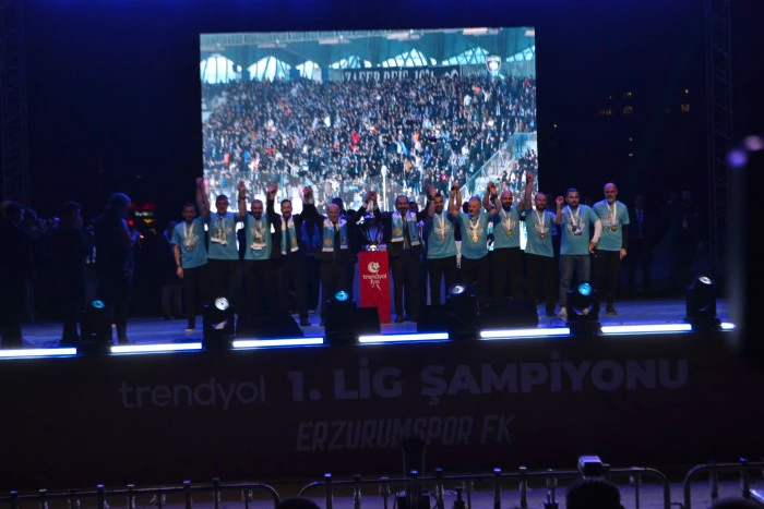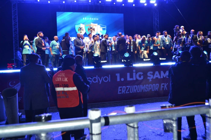 ehaber/Sema Örs) - Trendyol 1. Lig’de bitime iki hafta kala Süper Lig’e çıkmayı garantileyen Erzurumspor FK, şampiyonluk kupasını Erzurum Miting ve Etkinlik Alanı’nda binlerce taraftarın coşkusuyla havaya kaldırdı.