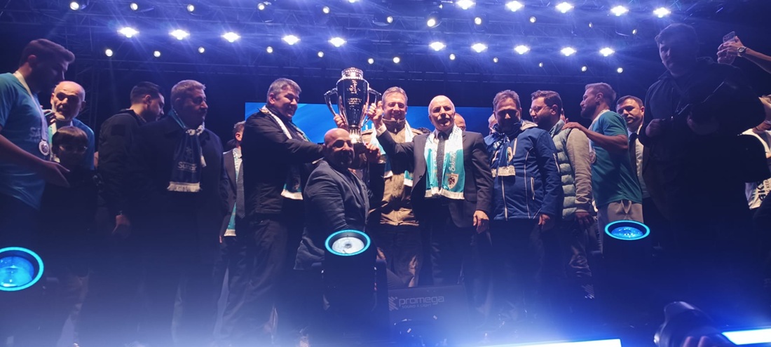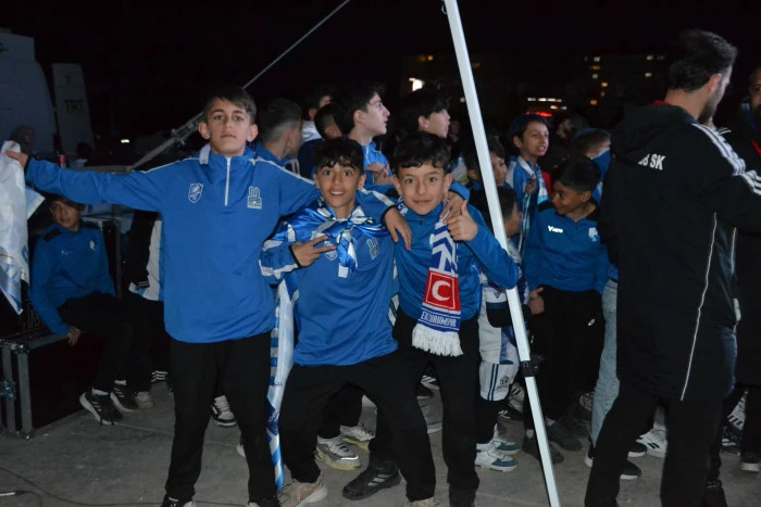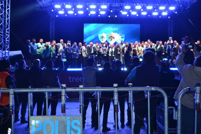 Kent merkezindeki turun ardından üstü açık otobüsle kutlama alanına gelen futbolcular, teknik heyet ve yöneticiler yoğun sevgi gösterileriyle karşılandı. Tören, saygı duruşu ve İstiklal Marşı ile başladı. Mehteran, zeybek ve bar ekiplerinin sahne aldığı gösteriler büyük alkış topladı.