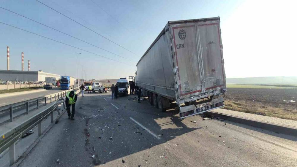 Eskişehir Organize Sanayi Bölgesi’nde (OSB) bir tırın, önündeki servis araçlarına ve otomobillere arkadan çarpması sonucu meydana gelen zincirleme kazada 12 kişi yaralandı. Yüklü olduğu için duramayan tırın neden olduğu kazada araçlar hurdaya dönerken, facianın eşiğinden dönüldü.Olay, sabah saatlerinde 75. Yıl OSB Mahallesi Firuz Kanatlı Bulvarı üzerinde meydana geldi. Edinilen bilgilere göre; F.K. idaresindeki 06 EYH 931 araç ve 06 BZ 4961 dorse plakalı tır, hızla seyir halindeyken önündeki araçlara arkadan çarptı. Tırın yüklü olması sebebiyle duramaması sonucu; T.S. yönetimindeki 26 S 1247 plakalı servis minibüsü, S.Ş. idaresindeki 26 S 0240 plakalı servis aracı, O.Ö. kontrolündeki 06 MCV 85 plakalı otomobil ve H.K. idaresindeki 77 DC 042 plakalı otomobilin karıştığı zincirleme kaza gerçekleşti. Çarpışmanın şiddetiyle araçlarda büyük çapta maddi hasar meydana geldi.12 yaralı hastanelere kaldırıldıİhbar üzerine olay yerine çok sayıda ambulans, itfaiye ve polis ekibi sevk edildi. Kazada; 26 S 0240 plakalı serviste bulunan 9 kişi çevredeki hastanelere kaldırıldı. Ayrıca 26 S 1247 plakalı servisteki 3 kişinin ise kendi imkanları ile hastaneye gittiği öğrenildi. Toplamda 12 kişinin yaralandığı kazada, sürücülerin durumlarının iyi olduğu ve ağır yaralı bulunmadığı bildirildi.Trafik tamamen durdurulduKaza nedeniyle Firuz Kanatlı Bulvarı’nın ilgili şeridinde trafik akışı tamamen durduruldu. Polis ekipleri yolda geçişe izin vermezken, araçların çekici yardımıyla kaldırılması için çalışma başlatıldı. Bölgede trafik, araçların tahliyesinin ardından normale döndü.Polis ekipleri kazayla ilgili inceleme başlattı.