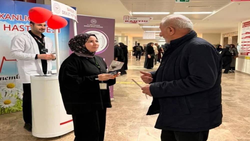 1-7 Nisan Ulusal Kanser Haftası dolayısıyla Bayburt Devlet Hastanesinde düzenlenen etkinliklerde hasta ve hasta yakınlarına kanser hakkında bilgilendirme yapıldı, hastane personeline ise kanserden korunma yolları ile erken tanının önemi anlatıldı.Uzm. Dr. Cansu Yazar tarafından hastane personeline yönelik eğitim düzenlendi. Eğitimde, kanserin önlenmesine yönelik yöntemler ile erken tanının tedavi sürecindeki yeri ele alındı.Poliklinik girişinde kurulan bilgilendirme standında ise hasta ve hasta yakınlarına broşür dağıtıldı. Stantta ayrıca yüz yüze bilgilendirme ve danışmanlık hizmeti sunuldu.