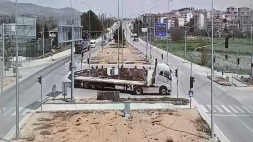 Kırşehir’in Mucur ilçesinde kamyonetin kırmızı ışıkta bekleyen otomobilin üzerine devrilmesi sonucu 1’i ağır 5 kişinin yaralandığı kazada yaşanan panik güvenlik kamerasına yansıdı.