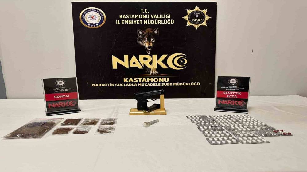 Edinilen bilgiye göre, Kastamonu İl Emniyet Müdürlüğü Narkotik Suçlarla Mücadele Şube Müdürlüğü ekiplerince, uyuşturucu madde kullanan ve satan şahıslara yönelik operasyon düzenlendi. Operasyonda yapılan aramada 46,41 gram bonzai maddesi, 125 adet sentetik ecza hapı, 1 adet uyuşturucu kullanımında kullanılan cam düzenek, 1 adet 7,65 mm çapında ruhsatsız tabanca ve tabancaya ait 1 adet şarjör ile 2 adet 7,65 mm çapında fişek ele geçirildi.