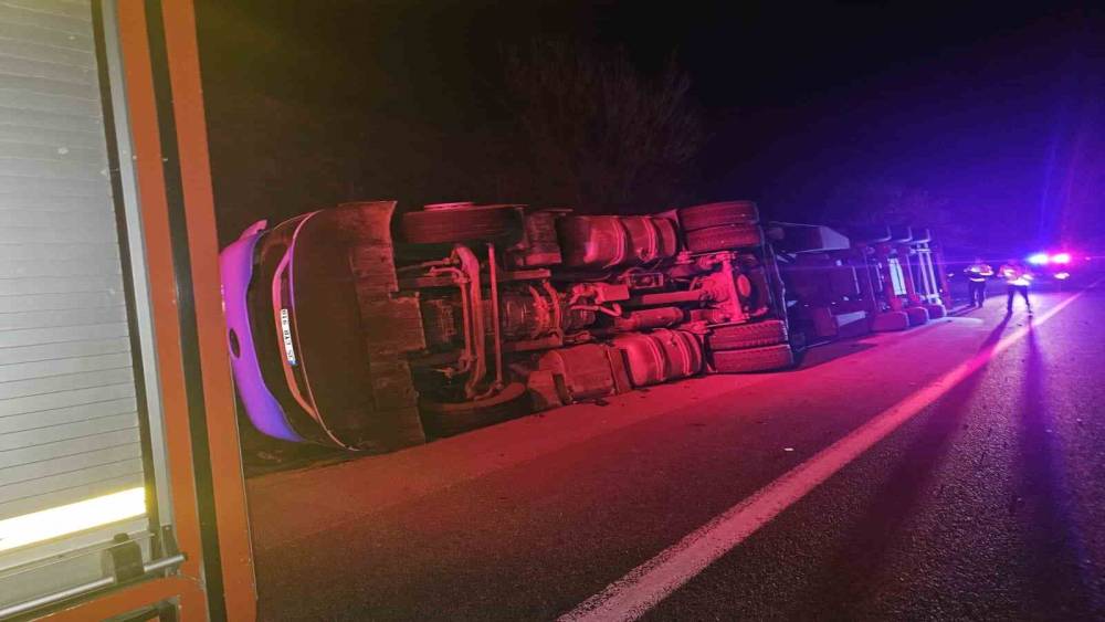 Kontrolden çıkan tır devrildi, şans eseri yaralanan olmadı