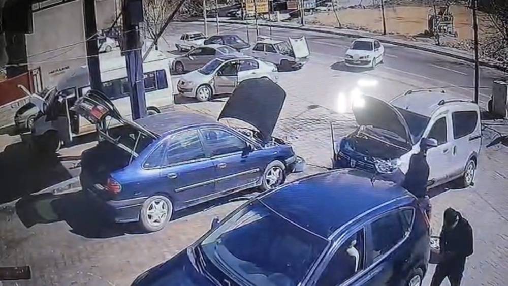 Mardin’in Mazıdağı ilçesinde oto tamirde park halinde bulunan otomobil, el freninin çekilmesinin unutulması nedeni ile hareket edip anayola kadar ilerledi. O anlar güvenlik kamerasına yansıdı.