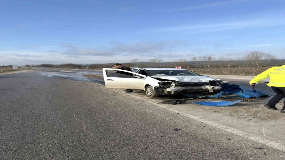 Kırklareli’nin Pınarhisar ilçesinde sabah saatlerinde meydana gelen trafik kazasında bir otomobil, duble yol girişi refüj başı yön tabelasına çarptı.