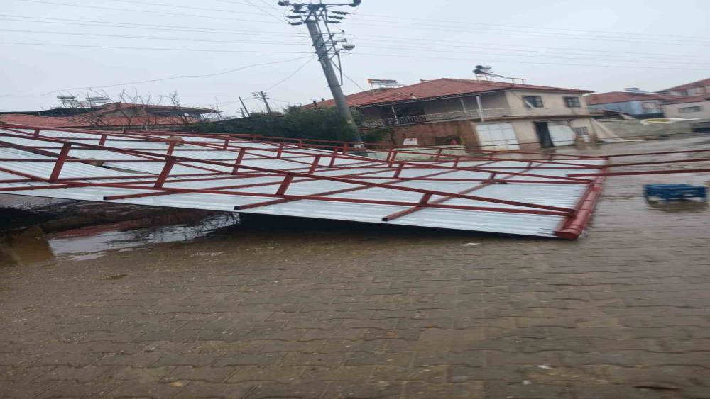 Manisa’nın Sarıgöl ilçesinde gece saatlerinde yağmurla birlikte etkili olan kuvvetli fırtına, Dadağlı Mahallesi’nde maddi hasara yol açtı.Manisa’nın Sarıgöl ilçesinde gece saatlerinde başlayan şiddetli fırtına gündüz de etkili oldu. Edinilen bilgilere göre, fırtına nedeniyle mahallede bulunan pazaryerinin çatısı yerinden sökülerek uçtu. Aynı bölgede bazı PTT direkleri ile elektrik direklerinin de devrildiği öğrenildi.Fırtınanın gece saatlerinde etkili olması, yaşanabilecek bir can kaybı ya da yaralanmanın önüne geçerken, olayda herhangi bir yaralanma yaşanmadığı bildirildi. Sabah saatleri itibarıyla hasar tespit çalışmaları başlatılırken, devrilen direkler ve zarar gören alanlarda ilgili ekiplerin onarım çalışmalarına başladığı öğrenildi.Yetkililer, vatandaşları olumsuz hava koşullarına karşı dikkatli olmaları konusunda uyardı.