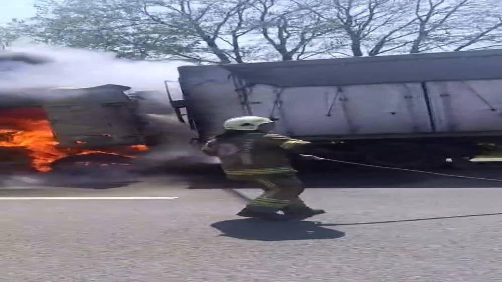 Bursa’nın İnegöl ilçesinde seyir halinde olan tır alev alev yandı.