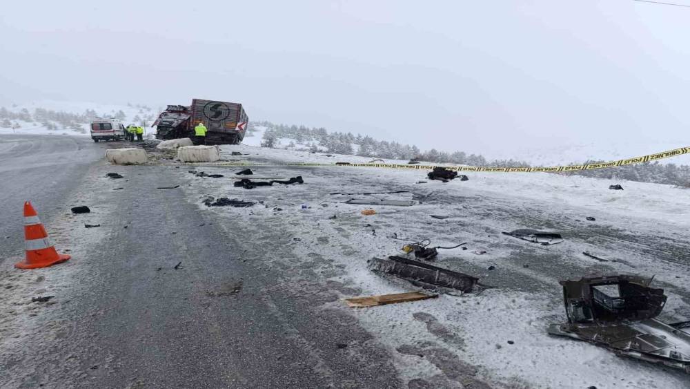 Sivas’ta 2 tırın kafa kafaya çarpıştığı trafik kazasında 1 kişi öldü, 2 kişi ağır yaralandı.Edinilen bilgilere göre, kaza, Sivas’ın Yıldızeli ilçesi Çamlıbel Geçidi’nde meydana geldi. Sivas istikametine seyir halinde olan 01 ZB 477 yabancı plakalı pamuk yüklü tır ile 06 BBD 21 plakalı tır kafa kafaya çarpıştı. Kazayı gören vatandaşların ihbarı üzerine olay yerine çok sayıda sağlık, AFAD ve polis ekibi sevk edildi. Yabancı uyruklu tır sürücüsünün hayatını kaybettiği tespit edilirken diğer tırda bulunan 2 yaralı ambulanslarla hastanelere sevk edildi.