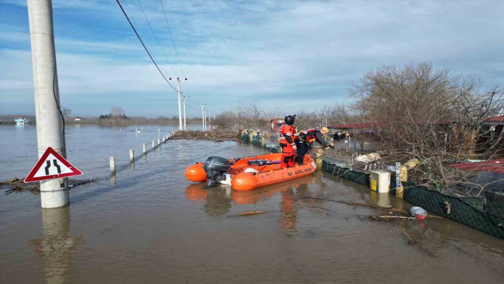 Edirne’ye gelen Sakarya AFAD ekibi, zodyak botlarla taşkın bölgesinde arama faaliyetlerini sürdürdü. Titizlikle yürütülen çalışmalarda kurtarılmayı bekleyen hayvanlar tek tek güvenli bölgelere taşındı.