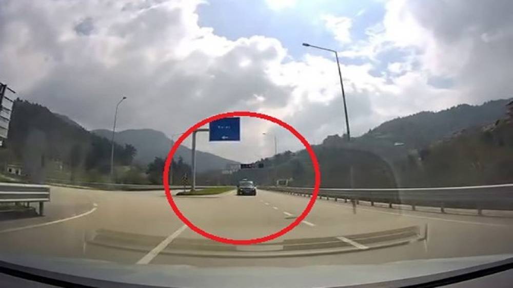Ters yönden gelen araç faciayı böyle teğet geçti