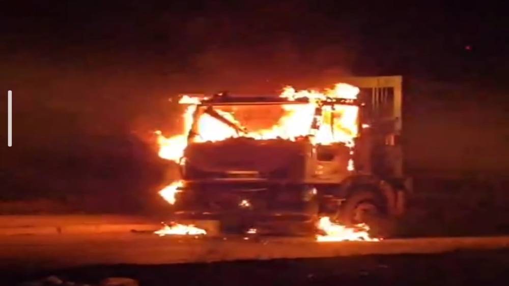 Van’da çöp kamyonu alev alev yandı