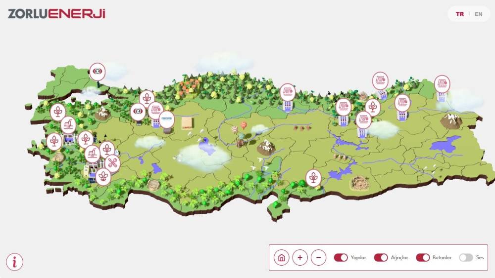 Şirket, sürdürülebilirlik çalışmalarını dijital platformlarla da destekleyerek daha görünür ve erişilebilir hale getiriyor. Hayata geçirilen 3D İnteraktif Enerji Haritası, yenilenebilir enerji portföyü ile ekosistem odaklı yaklaşımını Türkiye haritası üzerinde üç boyutlu (3D) ve etkileşimli bir deneyimle sunuyor. Kullanıcılar, lokasyon bazlı içerikler üzerinden biyoçeşitlilikten döngüselliğe, dekarbonizasyondan toplumsal etkiye uzanan başlıklarda tesislerin bulunduğu bölgelerdeki çevresel, sosyal ve ekonomik etkileri bütüncül bir çerçevede inceleyebiliyor. Platform, sürdürülebilirlik verisini mekânsal bir deneyimle buluşturarak şirketin şeffaflık ve erişilebilirlik odağını güçlü bir dijital anlatıya dönüştürüyor.