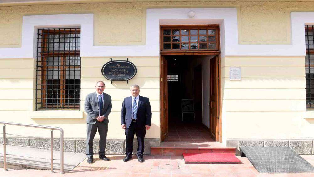 Amerika Birleşik Devletleri (ABD) Ankara Büyükelçiliği Maslahatgüzarı Michael Goldman, Anadolu Üniversitesi Rektörü Prof. Dr. Yusuf Adıgüzel’i makamında ziyaret etti.Ziyaret kapsamında, iki ülke arasındaki eğitim iş birlikleri ve üniversiteler arası akademik ilişkiler üzerine görüş alışverişinde bulunuldu. Rektörlük makamında gerçekleşen görüşmenin ardından Maslahatgüzar Goldman, Anadolu Üniversitesi Çağdaş Sanatlar Müzesi’ni de ziyaret etti. Rektör Adıgüzel’le birlikte müzedeki eserleri inceleyen Goldman, Anadolu Üniversitesi’nin sanata ve kültüre verdiği önemi takdirle karşıladığını belirtti.Ziyaret, hediye takdimi ve hatıra fotoğrafı çekimiyle sona erdi.