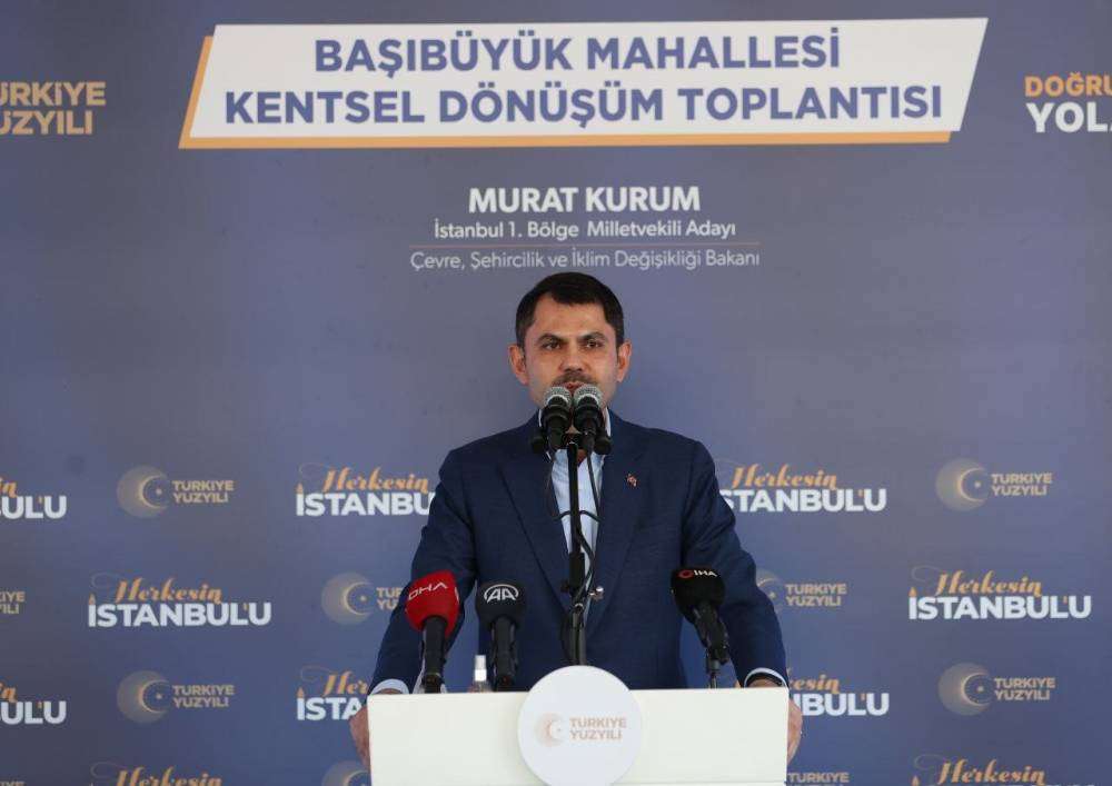 Maltepe’de bir dizi programa Bakan Kurum, "Şimdi sizlerle, iş insanlarımızla, muhtarlarımızla, STK temsilcilerimizle, site sakinlerimizle beraberiz. Buradan sonra Başıbüyük mahallemizde kentsel dönüşüm toplantımızı gerçekleştireceğiz, müjdelerimizi vereceğiz. Sonra yine Maltepe’mizde 16 blokta 431 konutluk projemizin temellerini atacağız. Şu anda, İstanbul’un bu tarihi dönüşümünde, bu yüzyılın dönüşümünde Yarısı Bizden Kampanya’mıza başvuru sayısı kaç oldu biliyor musunuz? Bugün itibariyle İstanbul’umuzda 467 bin bağımsız bölüm için şimdiden yapılan toplam başvuru sayısı 87 bine ulaştı. Maltepeli kardeşlerimiz de bu kampanyamıza yoğun ilgi göstermeye devam ediyor. Yani daha şimdiden 1 milyon 900 bin vatandaşımızın hayatı değişiyor. Maltepeli kardeşlerimiz de kampanyamıza yoğun ilgi göstermeye devam ediyor. Size söz, Maltepe’ye söz, İstanbul’a söz. Bu aziz şehirde 5 yıl içerisinde hiçbir riskli yapı kalmayacak, İstanbullu hiçbir kardeşim riskli yapıda oturmayacak. Hiçbir gencimiz, güvensizlik hissetmeyecek. Hiçbir annemiz, babamız, yastığa başını tedirgin bir şekilde koymayacak. Milletvekili adayı olduğumuz günün üzerinden tam 25 gün geçti. Sadece şu 25 günde İstanbul’da Maltepe’den Bağcılar’a, Kağıthane’de Şile’ye, Üsküdar’dan Kadıköy’e 39 ilçemizde milyarlarca lira değerinde 100’ü aşkın projenin temellerini attık. Kentsel dönüşümden sosyal konuta, millet bahçelerimizden belediyelerimizin projelerine yaptığımız desteklere kadar 100’den fazla yatırımın teslimini gerçekleştirdik. Yine bu 25 günde yüz binlerce İstanbullu vatandaşımızın hayatını değiştirecek kararlar aldık’’ dedi.