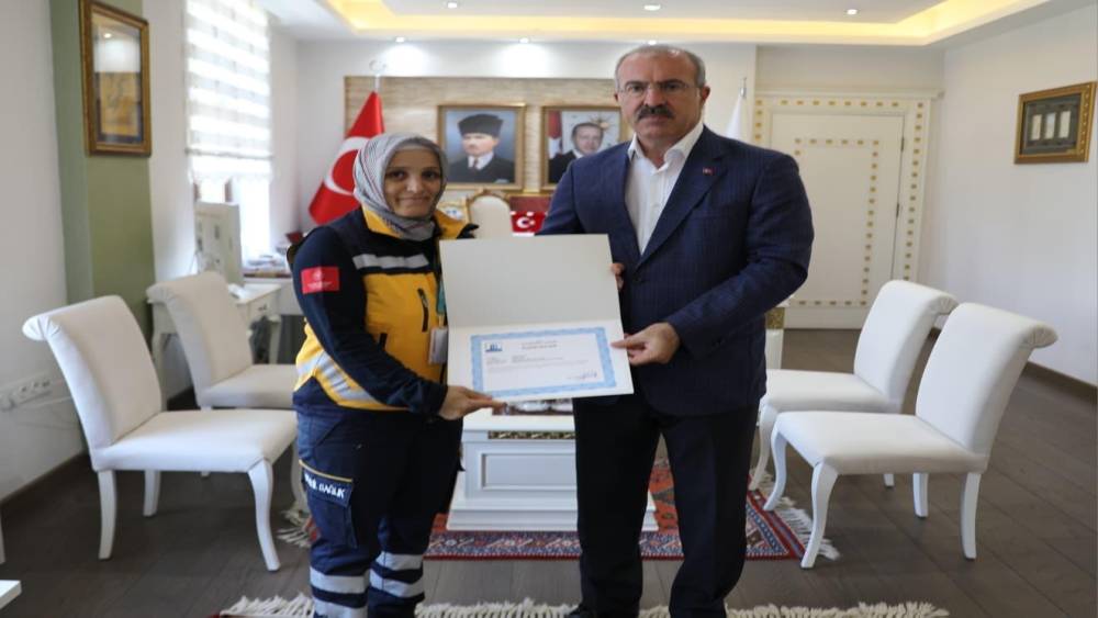 21 günlük bebeğin nefessiz kalma ihbarına hızlı ve etkili tıbbi yönlendirme yaparak bebeğin tekrar nefes almasını sağlayan ATT görevlisi Emine Çakır’ı, Çanakkale Valisi Doç. Dr. Ömer Toraman, başarı belgesi ile ödüllendirdi. Vali Toraman, Emine Çakır’a teşekkür ederek, görevinde başarılar diledi.
