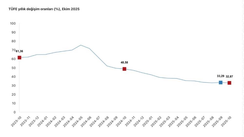 Yılmaz, orta vadeli hedeflere uyumlu politikanın korunduğunu belirterek, "Tüketici enflasyonu ekim ayında yüzde 2,55 oranında gerçekleşirken, gıda fiyatlarında don ve kuraklığa bağlı olumsuz etkilerin hız kestiği, enerji fiyatlarındaki ılımlı seyrin devam ettiği, hizmet enflasyonunun ise belirgin şekilde yavaşladığı görülmektedir. Giyim ve ayakkabı fiyatları ise geçen senin aynı ayında olduğu gibi geçici şekilde artış kaydetmiştir. Ekim ayında yıllık enflasyon yüzde 32,87’ye gerilemiş olup dezenflasyon süreci devam etmektedir. Bu görünüm, orta vadeli hedeflerle uyumlu patikanın korunduğuna işaret etmektedir" açıklamasında bulundu.