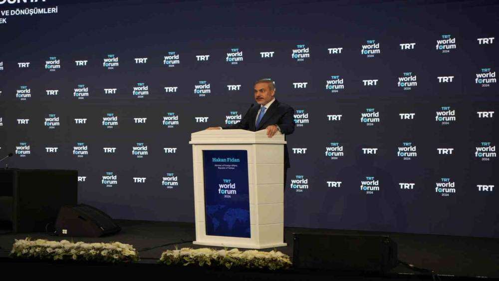 TRT’nin bu yıl 8’incisini düzenlediği TRT World Forum 2024’te "Savaş ve Düzen: Değişen Dünya’da Jeopolitik Değişimlere Yön Vermek" başlıklı oturumundan konuşan Dışişleri Bakanı Hakan Fidan, "Uluslararası sistem politik, askeri, ekonomik ve çevresel zorluklar getirmektedir. Bu zorluklar için bizler kritik bir jeopolitik dönüşümden geçmekteyiz. Küresel politikalar, polarizasyon, çok yönlülüğün erozyonu ve gittikçe daha derinleşen kutuplaşma görüyoruz. Sistem, bizi yeni müttefikliklere itiyor. Hepinizin bildiği üzere bunun sonucunda ise uluslararası güvenlik mimarisi gittikçe zayıflıyor. Küresel silahsızlık gerekiyor ama Orta Doğu ve Asya Pasifik bölgesinde silahlanma gittikçe artıyor. Bu da dünyayı bir uçurumun kenarına hatta nükleer savaş tehlikesine getirebilir. Diğer taraftan tekno-politikalar uluslararası dengeyi etkiliyor. Politikada, yapay zekanın ve siber güvenlik sistemlerinin ulusal güvenliklere eklenmesi de yine tehdit algısını artırıyor. Tüm bu zorluklar mevcut uluslararası sisteme çözümler getirmekten çok uzaktadır. Herhangi bir kriz için bu da çok yönlü yanıtlara yol açmaktadır" ifadelerini kullandı.