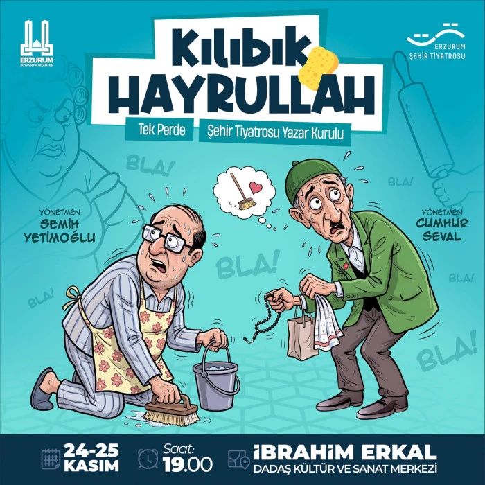 Erzurum Şehir Tiyatrosu Yazar Kurulu’nun kaleme aldığı, yönetmenliğini Semih Yetimoğlu ve Cumhur Seval’in üstlendiği tek perdelik aile komedisi “Kılıbık Hayrullah” bu akşam İbrahim Erkal Dadaş Kültür ve Sanat Merkezi’nde seyirciyle buluştu.