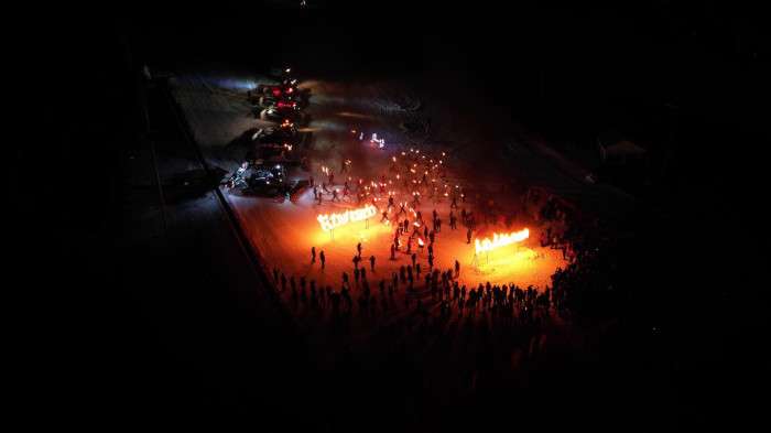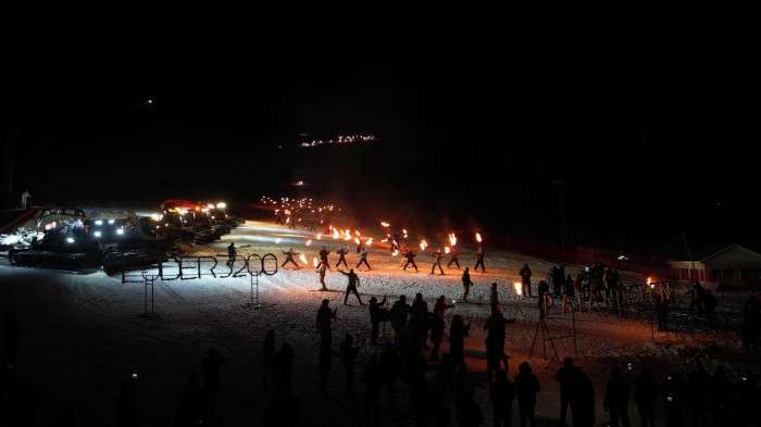 Erzurum Büyükşehir Belediye Başkanlığı'nın organize ettiği etkinlikte, jandarma arama kurtarma ekipleri ve Ejder 3200 Arama Kurtarma ekibi, zirveden dev Türk bayrağını kayaklarla taşıdı. Davetliler, ledli ve ışıklı kayak senkronize ekipleri ile kar motorlarının eşsiz gösterilerini hayranlıkla izledi. Gece, meşalelerle zirveden inen kayakçıların "Ejder 3200 ve Palandöken" yazısını ateşlemesiyle zirveye ulaştı.