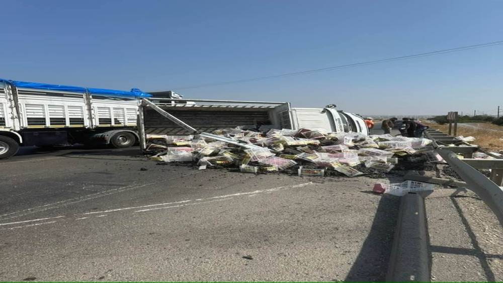Gaziantep’te lastiği patlayan kamyonet yan yattı: 2 yaralı