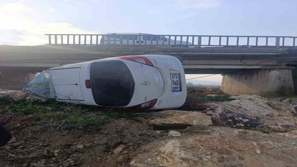 Bursa’nın İnegöl ilçesinde kontrolden çıkan hafif ticari aracın köprü korkuluklarını kırarak dere yatağına uçtuğu kazada sürücü yaralandı.