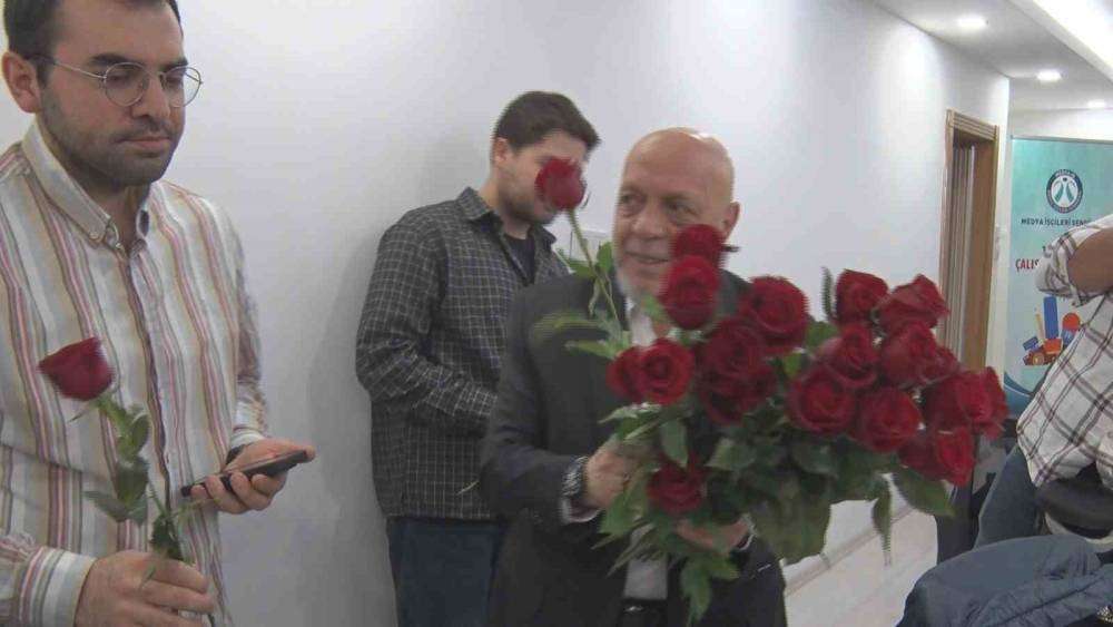Hak İşçi Sendikaları Konfederasyonu (HAK-İŞ) Genel Başkanı Mahmut Arslan, Üyeleri ‘10 Ocak Çalışan Gazeteciler Günü’ dolayısıyla gazetecilere gül takdiminde bulundu.