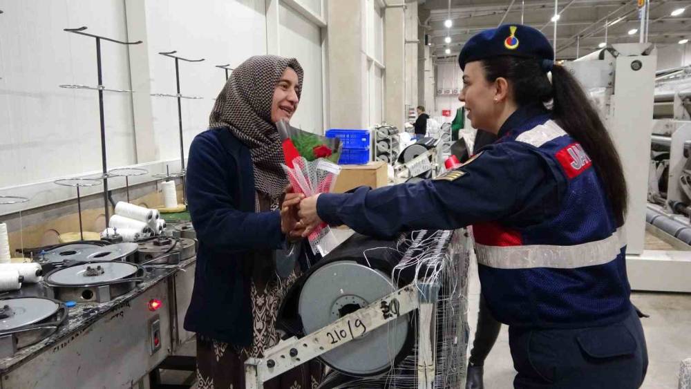 Jandarma 8 Mart Kadınlar Günü dolayısıyla fabrika işçisi kadınları unutmadı