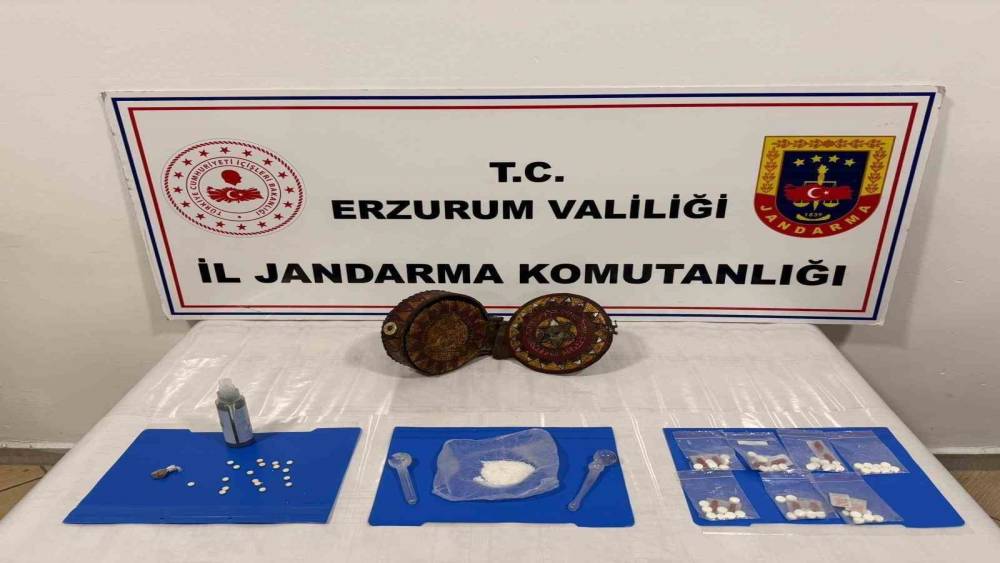 Erzurum İl Jandarma Komutanlığı ve Çat Cumhuriyet Başsavcılığı koordinesinde yapılan çalışmalar neticesinde; 31 Mart 2026 tarihinde Çat ilçesi yol kontrol noktasında uyuşturucu madde taşıyabileceği değerlendirilerek durdurulan araç içerisinde bulunan 2 şahsın üzerinde ve eşyalarında yapılan aramada; 132 gram bonzai ham maddesi, 41 gram metamfetamin, 5 gram eroin, 82 adet sentetik ecza hap, 18 adet captagon hap, 2 adet uyuşturucu kullanma aparatı ve 1 adet ceylan derisi üzerine yazılmış altın işlemeli Tevrat ele geçirildi.