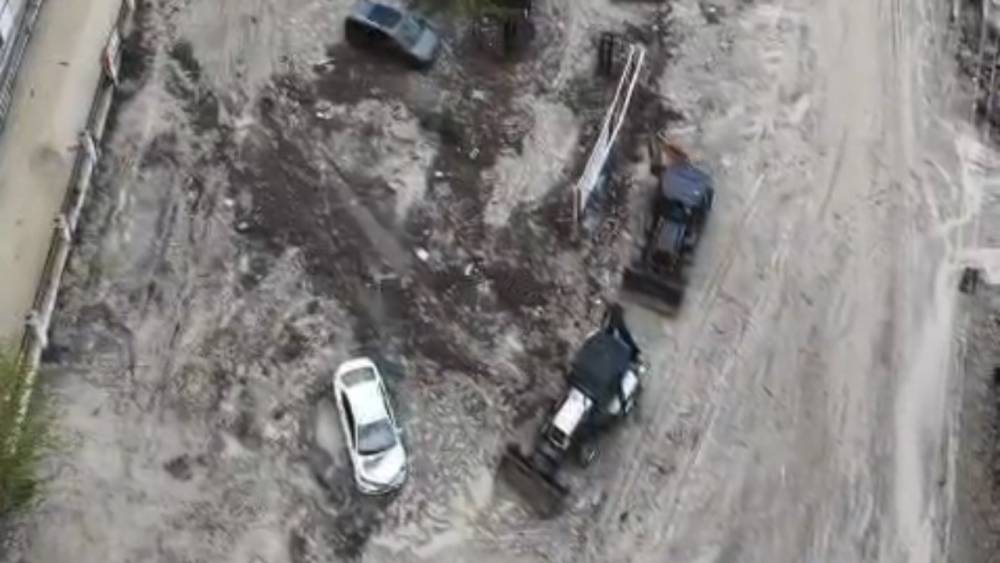 Dron ile havadan kaydedilen görüntülerde, dere yatağının taştığı ve yolların su altında kaldığı, birçok noktada çamur ve balçık birikintilerinin oluştuğu görüldü.