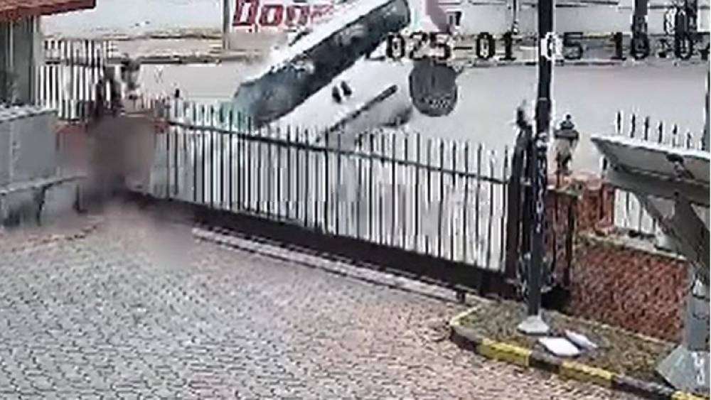 Meydana gelen feci kaza bir iş yerinin güvenlik kamerasına yansırken görüntülerde ise hızla ilerleyen hafif ticari aracın bir fabrika duvarına çarptığı anlar ve fabrikadan yardıma koşan vatandaşlar yer aldı.