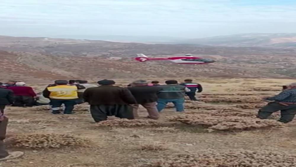 Malatya’da uçuruma yuvarlanan şahsın helikopterle sevk anları kamerada