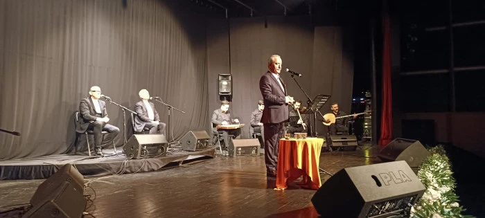 “Ramazan Neşesi Mehmet Kemiksiz’in ‘Bir Nefes Hû’ konseriyle final yaptı. Sanatçıya tablo hediye edildi, Ergün Engin ve Ahmet Yer teşekkürlerini sundu.”