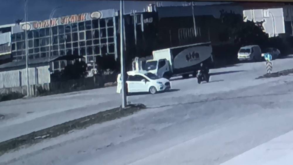 Öte yandan, kaza anı çevredeki bir iş yerinin güvenlik kamerasına saniye saniyesine yansıdı. Görüntülerde, hafif ticari aracın sokağa çıktığı sırada motosikletle çarpıştığı ve sürücünün yere düştüğü anlar yer aldı.