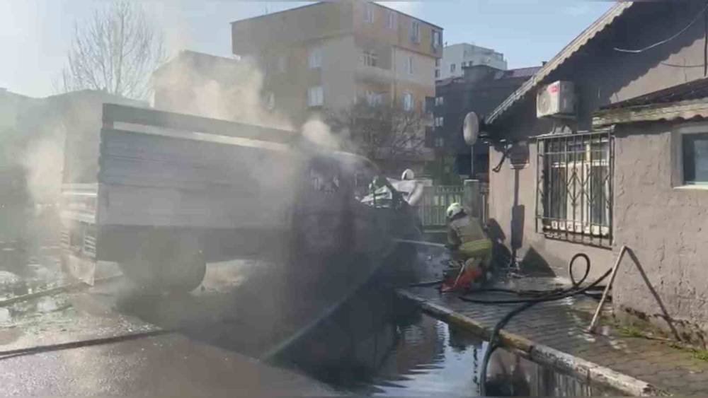 Sancaktepe’de kamyonet alev alev yandı