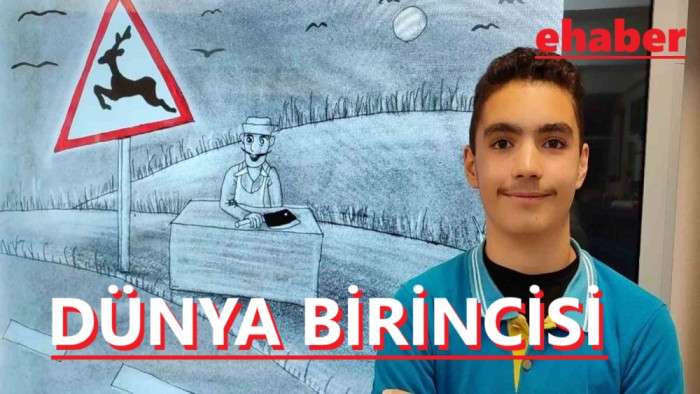 Sinop’ta ortaokul öğrencisinin çizdiği karikatür, "dünya birinciliği" ödülü aldı