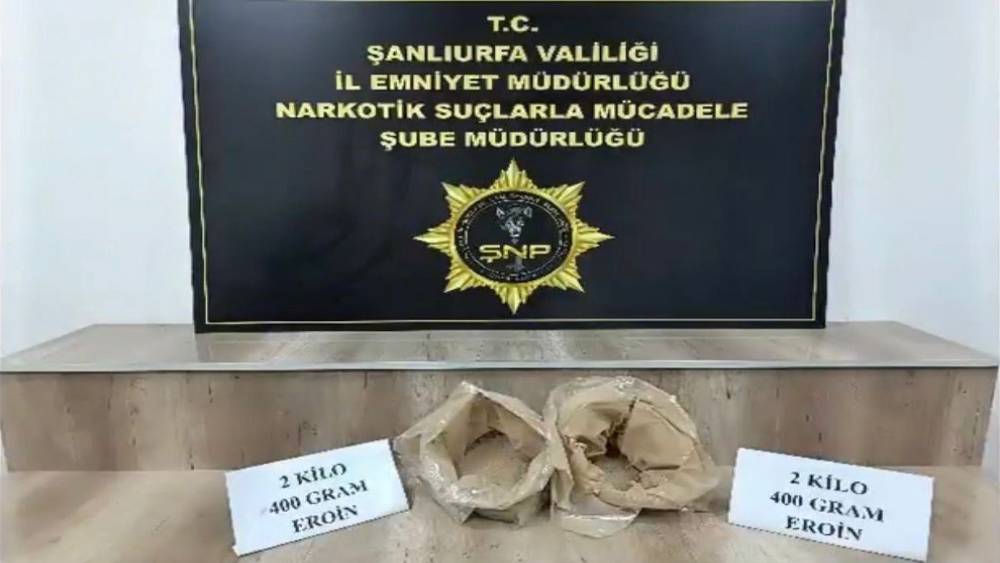 Şanlıurfa İl Emniyet Müdürlüğü Narkotik Suçlarla Mücadele Şube Müdürlüğü ekiplerince Siverek ilçesinde düzenlenen operasyonda 2 kilo 400 gram eroin ele geçirildi, 1 şüpheli yakalandı.