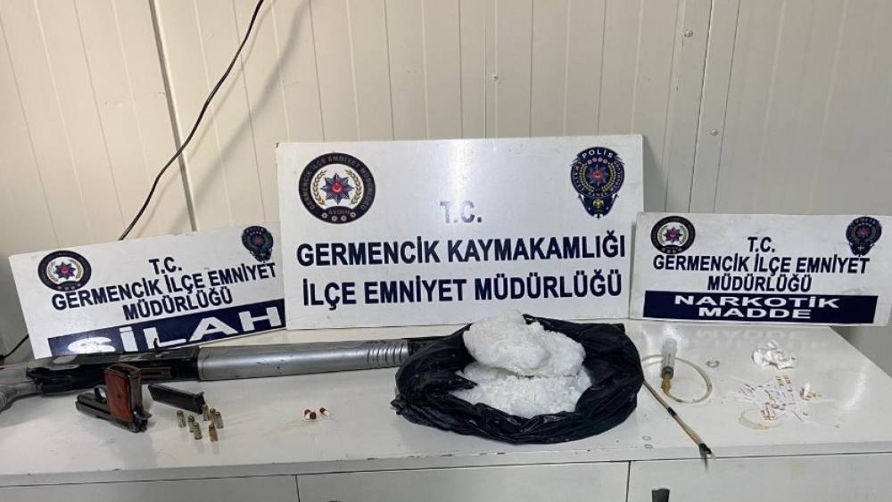 Uyuşturucu madde kullanımının ve ticaretinin önlenmesine yönelik Germencik İlçe Emniyet Müdürlüğü tarafından çalışma başlatıldı. Çalışmalar kapsamında Reisköy Mahallesi’nde durdurulan M.Y. isimli şahsın yere attığı kağıt parçası içerisinde uyuşturucu madde olduğu tespit edilirken, şüpheli şahsın ikametinde arama yapıldı. Yapılan aramada, 2 kilo 60 gram uyuşturucu olduğu değerlendirilen madde,(Metamfetamin), 3 adet uyuşturucu hap, 1 adet içerisinde sıvı bir madde bulunan şırınga, Ph ölçümünde kullanıldığı değerlendirilen test kağıtları, 1 adet uzun namlulu silah ele geçirildi. Olayla ilgili gözaltına alınan M.Y. hakkında TCK 188. madde (Uyuşturucu Madde Ticareti) suçundan işlem yapılırken, sevk edildiği adli makamlarca tutuklandı.