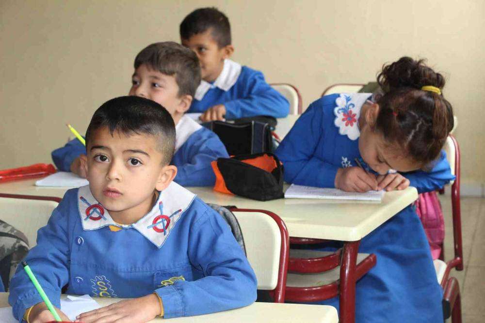 Uludere’nin Uzungeçit beldesindeki Zübeyde Hanım Anaokulu ve Uzungeçit İlkokulu öğrencileri, beyaz yakalı, kırmızı ve mavi önlükleriyle eğitim görüyor.