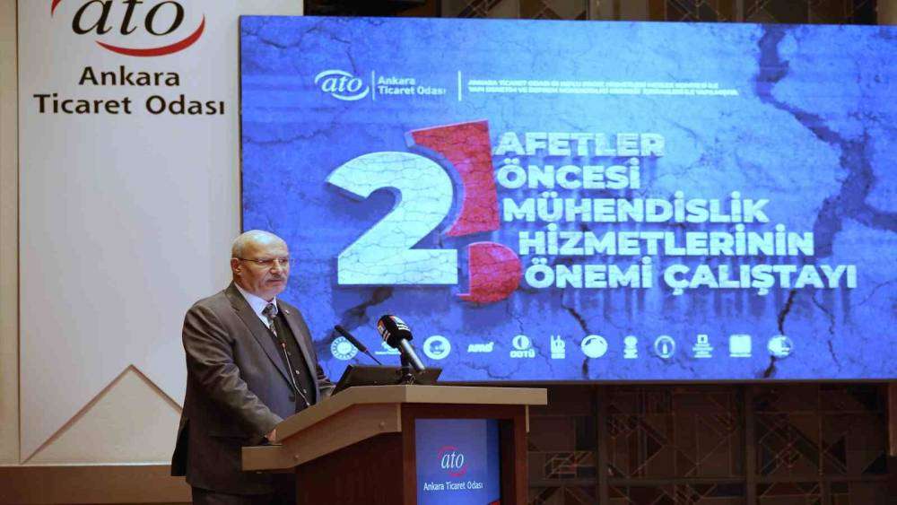 ATO Başkanı Gürsel Baran, deprem, sel, fırtına, volkanik patlama gibi doğal afetlerin yaşamı derinden etkileyerek, fiziksel, sosyal, psikolojik ve ekonomik açıdan yıkıcı sonuçlara yol açtığını belirterek, afetleri doğası gereği tamamen engelleme veya durdurmanın mümkün olmadığını, ancak alınacak önlemlerle etkilerinin azaltılıp, zararlarının en aza indirilebileceğini söyledi. Afet öncesi önlemlerde mühendislik hizmetlerinin önemine dikkat çeken Baran, "Dayanıklı altyapılar kurmak, erken uyarı sistemleri ve afet bilinci oluşturmak depremlere hazırlık olarak yapılabilecek çalışmalar. Mühendislik hizmetleri de aynı şekilde, bölgenin veya bir ülkenin tamamının afetlere karşı daha dirençli hale gelmesi için kritik bir adımı teşkil ediliyor. Afet öncesi mühendislik hizmetleri, risk analizlerinin yapılması, binaların güçlendirilmesi, altyapıların ve şehirlerin afete dayanıklı hale getirilmesi açısından çok önemli. Deprem ve diğer doğal afetler, çağımızın en yıkıcı savaşları, karşıdaki hasmımız da tedbirsizlik. Afetler öncesi önlem, beka meselesidir" dedi.