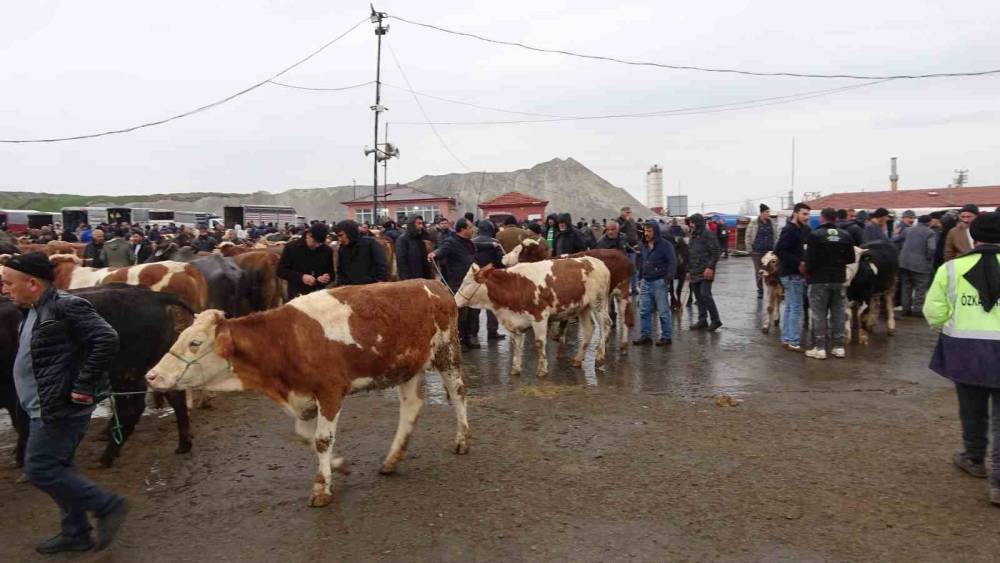 Yozgat’ın Sorgun ilçesinde bulunan canlı hayvan pazarı, yağışlı havaya rağmen üretici ve alıcıları buluşturuyor.Bölgenin en büyük hayvan pazarlarından biri olan Sorgun Canlı Hayvan Pazarı, her hafta perşembe günü alıcı ve satıcıları bir araya getiriyor. Alım satım yapmak isteyen, kesimlik hayvan tercih eden ve Kurban Bayramı için erkenden kurbanlık seçenler bu pazarda toplanıyor. Her hafta perşembe günü sabah 05.00’te kurulan hayvan pazarı öğle saatlerinde sona eriyor. Pazar, Yozgat ve ilçelerinin yanı sıra Sivas, Tokat, Çorum, Kırşehir gibi çevre illerdeki besicilere de hitap ediyor.Üreticiler bin bir emekle yetiştirdikleri hayvanlarını en iyi fiyata elden çıkarmaya çalışırken, alıcılar ise bütçelerine uygun alım yapmak için kıyasıya rekabet ediyor. Sorgun Hayvan Pazarı sadece bir alışveriş noktası değil, aynı zamanda bölge ekonomisinin en önemli lokomotiflerinden biri olarak görülüyor. Özellikle Kurban Bayramı öncesi zirve noktasına ulaşan hareketlilik ilçedeki ticari hayata büyük katkı sağlıyor.Pazara giden Şevki Soybir, "Hayvanlar alınıyor satılıyor. Kurbanlığa talep çok şu anda. Kurbanlıklar iyi satılıyor. Hisse fiyatları 45’ten başlıyor. 55, 60 bin lira aralığında gidiyor" dedi.Kırşehir’den canlı hayvan pazarına geldiğini ifade eden Sami Erkanlı ise "Kurbanlıklara yeni yeni talepler var. 5-6 kişilik olanlar 180 veya 150 bin arası. 4-5 kişilikler 120-130 arası. En büyük pazar Sivas Şarkışla hayvan pazarıdır. Çorum pazarı, Sorgun pazarı, Kırşehir pazarı, Aksaray pazarı böyle gidiyor sırayla. Buradaki esnaf oraya gidiyor, oradakiler buraya geliyor. İlla ki aralarında bir ekmek parası dönüyor. Dana, kurbanlık inek, damızlık inekleri buradan tamamlar. Buraya dışarıdan gelen de çok. Kırşehir’den Tokat’tan Sivas’tan Mersin’den Adana’dan gelenler var" cümlelerini kullandı.